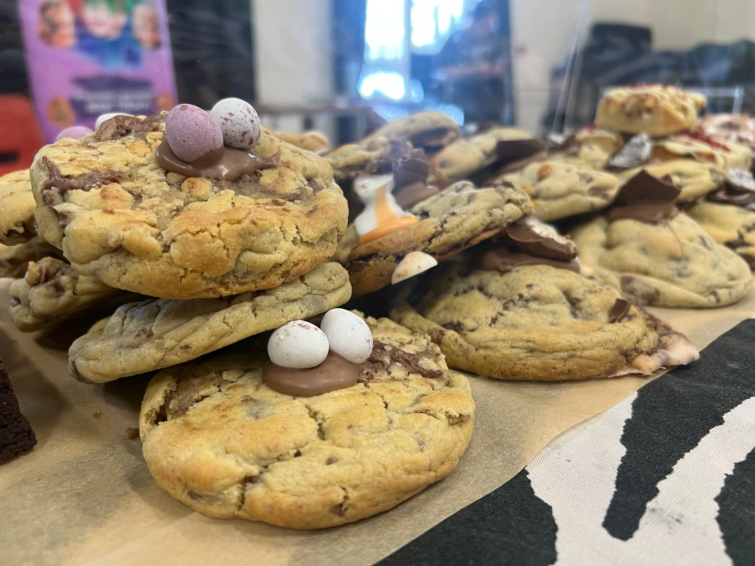 A chunky, NYC style, milk choc chip cookie, packed with mini eggs.